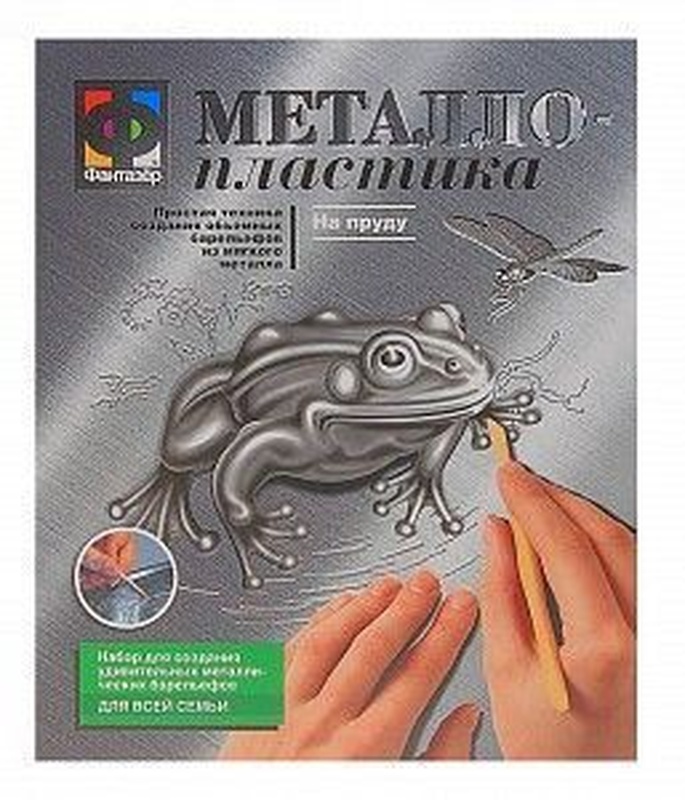 Возраст: от 5 лет Для мальчиков и девочек Цвет: металлик. Комплект: основа из алюминия, цветной шаблон, подробная инструкция, 4 стека, виниловый коврик, крепежное устройство. Из чего сделана игрушка (состав): металл, фольга, дерево. Размер упаковки: 18.5 × 22 × 2.5 см. Размер игрушки: 18 x 2 x 22 см. Упаковка: картонная коробка. Вес: 50 г. Страна обладатель бренда: Россия. Набор для детского творчества «На пруду» из серии «Металлопластика» дает возможность создать оригинальное изображение симпатичной лягушки. Юный скульптор без особого труда сможет сотворить барельеф из мягкого металла, ведь под рукой у него будет все необходимое, включая основу, цвет