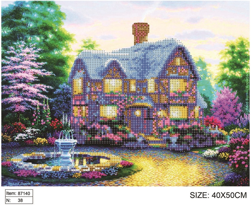 87140 Алмазная мозаика Сказочный домик, размер 40*50 см, без подрамника, частичная выкладка