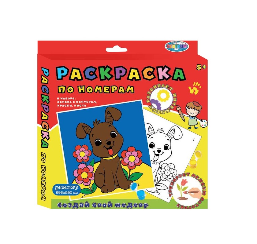 90595 Картинка по номерам Собачка, 220*230, гуашь 6 цветов, кисточка