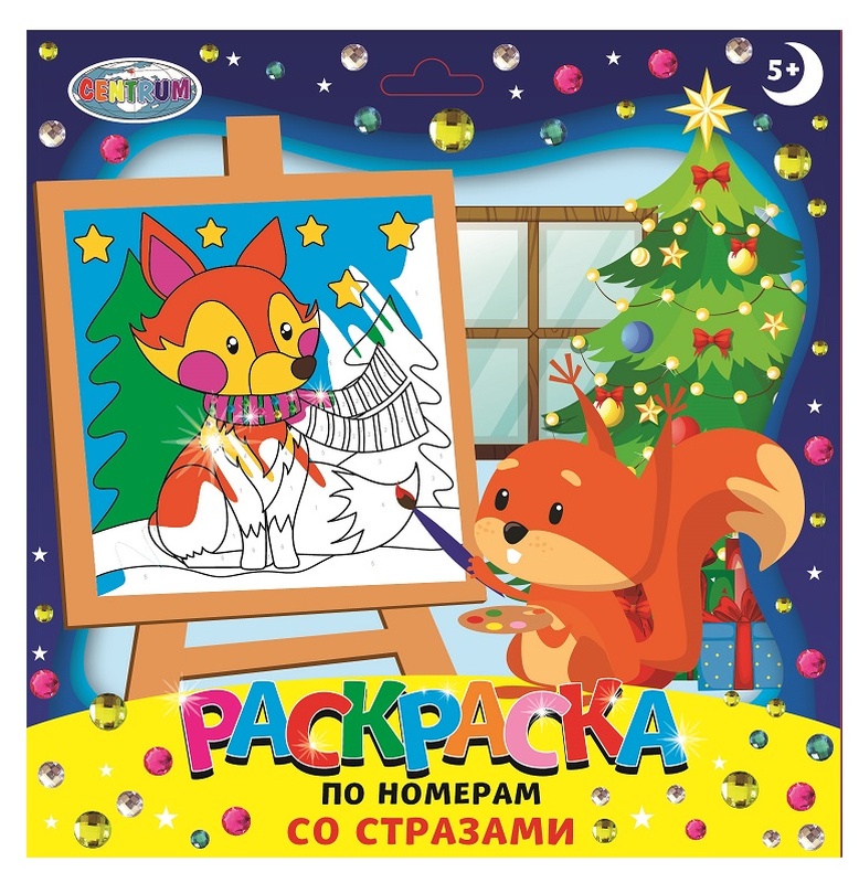 90959 Картинка по номерам со стразами Лисичка Зимняя серия, гуашь 6 цветов, стразы, кисточка