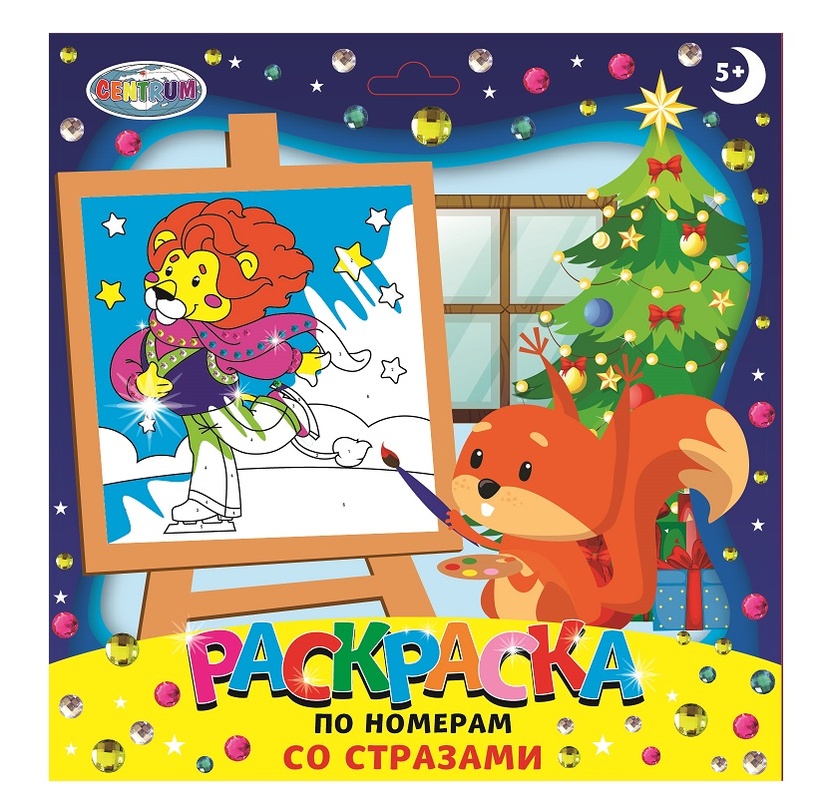 90963 Картинка по номерам со стразами Лев Зимняя серия, гуашь 6 цветов, стразы, кисточка