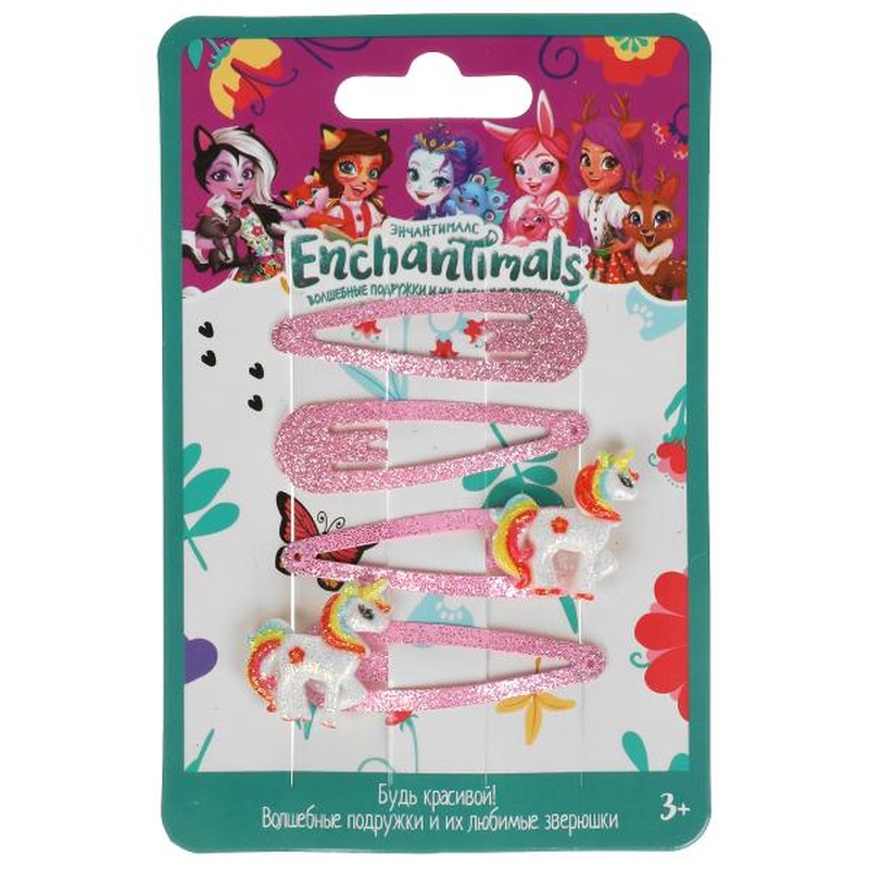 Аксессуары д/девочек Энчантималс заколки с украшениями Единорог, 4 шт