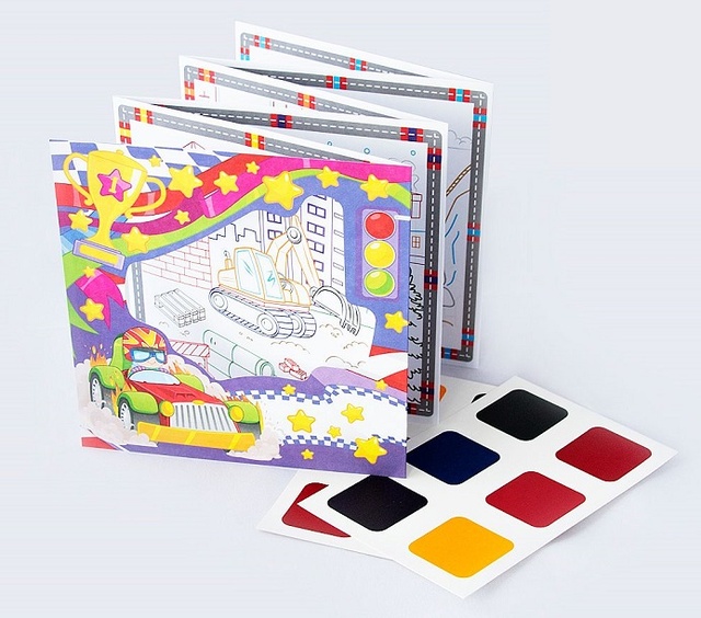 Супер раскраска, длиной 990 мм. 10 раскрасок в одной + набор акварельной краски.