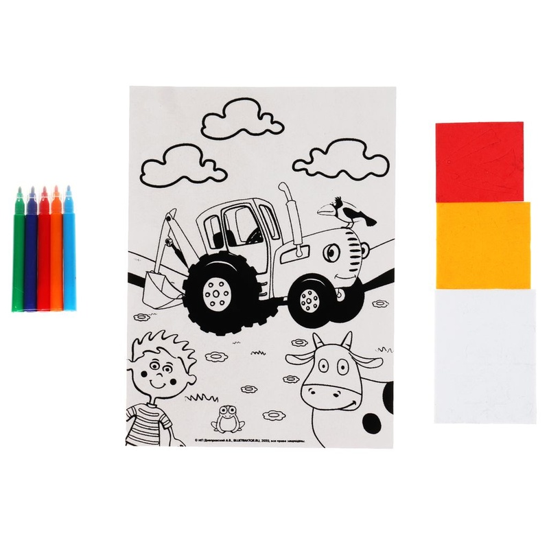 Аппликация и раскраска на бархате Синий Трактор (17х23см)