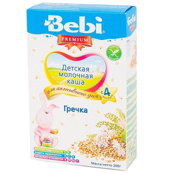 Bebi Молочная Гречневая каша Premium с 4 мес. 200 г Бренд: Bebi (Словения), Возраст: с 4 мес Гречневая молочная каша Premium - это каша высшего качества, относящиеся к категории продуктов экстра-класса. Приготовлены из 100% натуральных, тщательно отобранных ингредиентов. Они имеют тонкий вкус и нежную консистенцию. Bebi Premium - это оптимальное сочетание 12 витаминов и минералов, а также дополнительное обогащение железом и йодом, что так необходимо для правильного роста и развития малыша. Гречневая крупа имеет высокую пищевую ценность благодаря содержанию легкоусвояемого белка. Гречка является безглютеновой культурой. Каша содержит специально обработанное высококачественное натуральное коровье молоко и богата биологически активными растительными жирами. Каша обогащена железом, йодом, важнейшими витаминами (A, C, E, D, В1, В2, РР). Железо участвует в процессах кроветворения и переноса кислорода к клеткам и тканям организма, а йод важен для умственного развития и роста детей. Каша отличается пониженным содержанием сахара. Состав: гречка 49%, цельное сухое молоко 33 %, сахар, витамины (ретинола ацетат, холекальциферол, токоферола ацетат, тиамина гидрохлорид, рибофлавин, пиридоксина гидрохлорид, аскорбиновая кислота, кальция пантотенат, фолиевая кислота, никотинамид, фитоменадион, цианокобаламин) и минеральные вещества (дифосфат железа, иодид калия). Характеристики: Обогащена важнейшими витаминами и минералами Не содержит вкусовых добавок, ароматизаторов, консервантов, красителей, генетически модифицированных продуктов Благодаря специальной технологической обработке снижается риск возможной аллергии Растворимая без варки Объем 5-9 порций Энергетическая ценность: 427 ккал