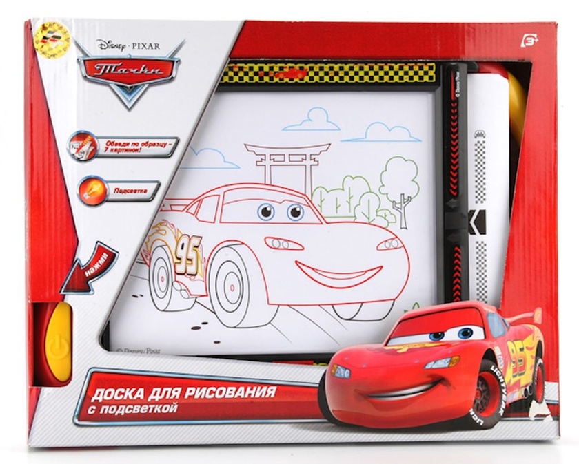 Доска для рис. "Тачки" магнит. цветная с 4мя печатями