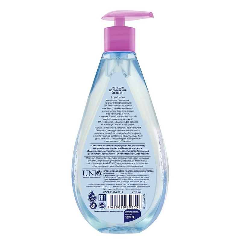 Нет в наличии ОтсутствуетСредство для подмывания девочек учитывает особенности вагинальной микрофлоры, очень неустойчивой и незащищенной в данный возрастной период. Уникальный состав с полезным пребиотиком регулирует баланс, восстанавливая естественное равновесие и соотношение микрофлоры. Мягко очищает, не нарушая естественный рН-баланс интимной зоны у маленьких девочек. Экстракты ромашки, лаванды и календулы обладают выраженным антибактериальным и противовоспалительным действием. Средство для подмывания девочек AQA baby разработано при сотрудничестве с детскими гинекологами специально для ухода и очищения интимной зоны данного возрастного периода и полностью учитывает все особенности. 100% безопасно: не содержит SLES, SLS, парабенов, феноксиэтанола, формальдегида, продуктов нефтепереработки. Без красителей, не тестируется на животных. Товар сертифицирован.