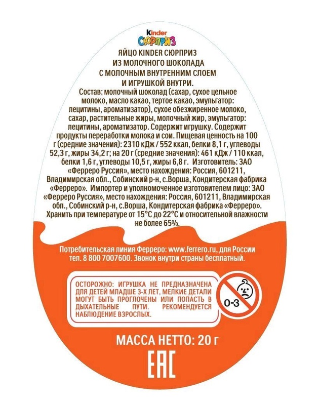 Яйцо шоколадное "Киндер сюрприз" Имена