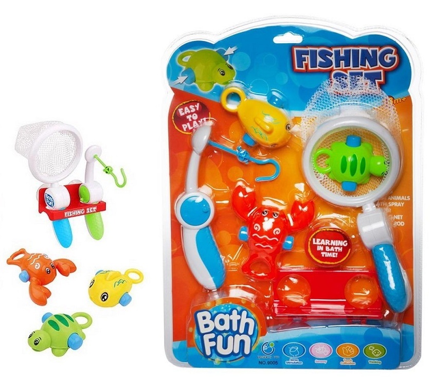 Набор предлагает купающемуся малышу сачок и удочку для веселого времяпровождения. Игрушки в ванне отвлекают капризных малышей от процесса купания и вызывают радость и смех.