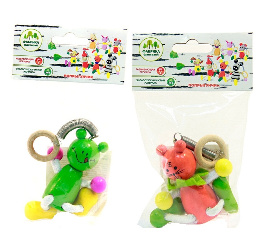 Попрыгунчик - забавная и очень интересная игрушка на пружинке. У попрыгунчика есть колечко, которое можно надеть на пальчик и потянуть игрушку вниз - попрыгунчик подпрыгнет вверх, принимая первоначальное положение. Все детали игрушки очень качественно обработаны, не имеют острых углов, сколов и зазубрин. Яркие цвета попрыгунчика обязательно привлекут внимание ребенка. Игрушка отлично развивает ловкость, сноровку, координацию движений и мелкую моторику ручек. Игрушка представлена в ассортименте. Игрушка изготовлена из экологически чистого дерева, есть элементы металла и текстиля, упакована в пакет с картонным хедером с отверстием. Размеры игрушки: 7*3*15,5 см. Размеры игрушки в упаковке: 10*3*16,5 см.
