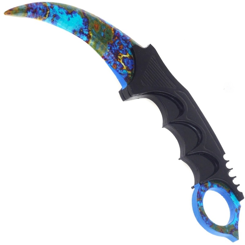 Нож выполненный из дерева практически полностью повторяет свой игровой аналог от одной из самых популярных игр в мире Counter-Strike: Global Offensive. Нож из серии «Керамбит» один из самых популярных моделей ножей во вселенной игры. Если у вас есть сомнения выбора между какими-либо моделями, можете зажмуривать глаза и смело брать Керамбит. Он универсален и является так же самым популярным товаром в нашем магазине. Необычная форма ножа притягивает внимание, а за счет наличия кольца на рукоятке ножа его можно вертеть на пальце, как это происходит в СS:GO у главного персонажа. Один раз поиграв с ним, парни более не остаются равнодушными к нему. Этот ножик с небольшим изогнутым лезвием выполнен в виде деревянной копии оригинала. На лезвии – узоры красного, а его края закруглены, что обеспечивает безопасность при игре. Нож-керамбит – редкое и ценное оружие. Керамбит – редкий и дорогостоящий инструмент, это ножик для обратного хвата, по форме напоминающий серп. Яркий и стильный дизайн оценит по достоинству каждый – лезвие ножа окрашено красками с хромовым и алюминиевым отблеском, а сверху покрыто узорами красных цветов. А главное преимущество данной игрушки – в безопасности: края деревянного лезвия сглажены и закруглены, поэтому пораниться им невозможно.