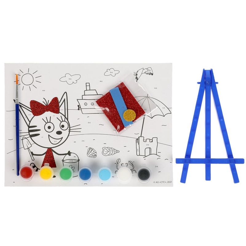 Холст Три Кота "Карамелька на море" для росписи по номерам 17*23