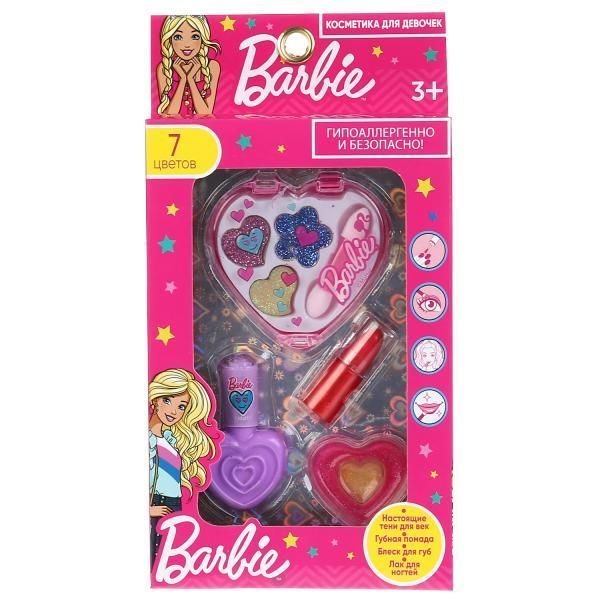 Набор декоративной гипоаллергенной косметики для девочек «Барби» ТМ «Милая леди» обязательно понравится юным модницам: - тени - двусторонний аппликатор для нанесения - блеск для губ - помада для губ - лак для ногтей - футляр с прозрачной крышкой Девочки в любом возрасте хотят быть красивыми. Специально для маленьких модниц разработан гипоаллергенный набор. Девочка обязательно оценит всё: блестящую палитру, яркую модную упаковку с героями. Можно миксовать цвета, чтобы создать свой неповторимый стиль. Развивайте чувство стиля и вкуса, учите девочку создавать свой уникальный образ с набором косметики ТМ «Милая леди». Материал: полимер. Материал упаковки: пластмасса + бумага. Рекомендуем детям от 3-х лет.
