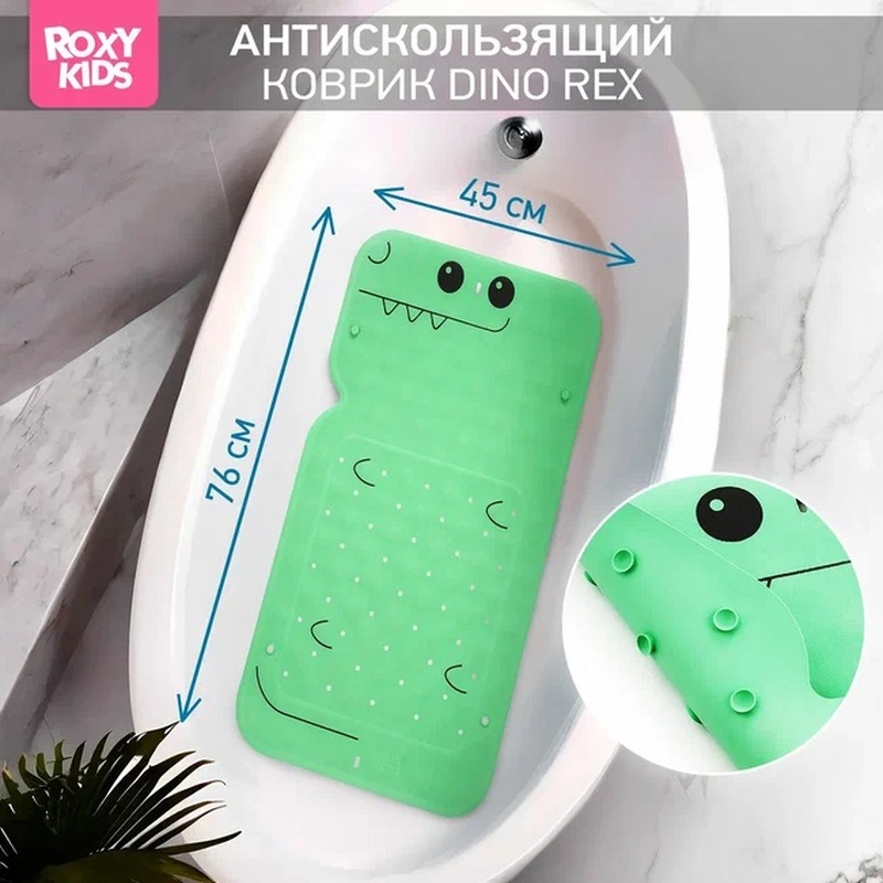Коврик для ванны антискользящий резиновый Дино 45х76 см, с отверстиями
