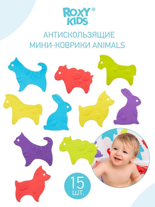 Коврики-мини ANIMALS , антискользящие д/ванны 15шт.