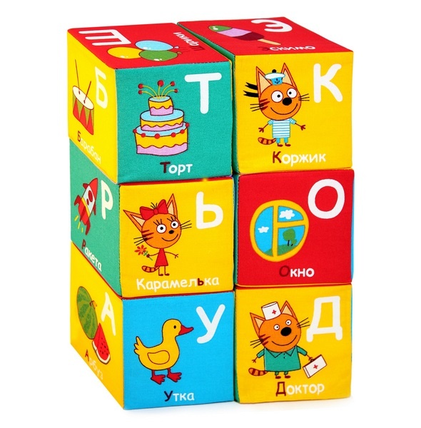 Набор из шести мягких кубиков «Алфавит Три Кота» размером 10 см - это универсальное учебное пособие для изучения русского алфавита, как детьми, так и взрослыми. Узнаваемые герои из мультфильма «Три Кота» Коржик, Компот и Карамелька очень любознательны и дружелюбны. Кубики Алфавит от ТМ«Мякиши» рекомендованы специалистами по раннему развитию и детскими психологами. С помощью Алфавита от Мякишей можно составить более 50 слов, изучить 33 русские буквы. В набор добавлены дополнительные три буквы: +А, +М, +П, чтобы собрать слова МАМА и ПАПА.