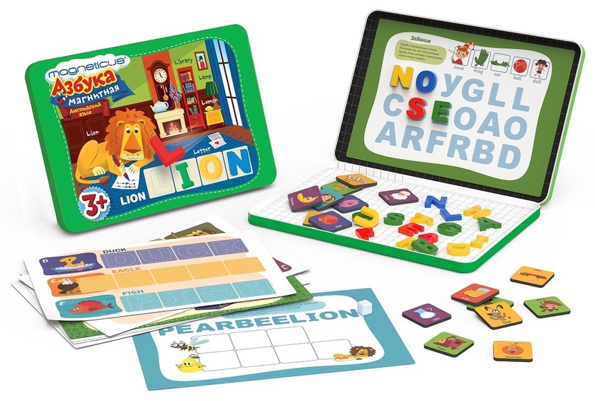 Магнитная мозаика "Забавные Животные",Magneticus, MA-060 Позвольте Вашему ребенку ненадолго стать художником, но немного необычным, ведь вместо красок у него будут детали мозаики, которые необходимо соединить. Получившееся изображение прибавит уверенности в себе, и начинающий живописец продолжит развиваться в этом направлении, создавая боле сложные композиции из красочных элементов с магнитным основанием. Особенности: - В этом наборе предусмотрены яркие детали 5 цветов с магнитной основой. - Дети смогут соединять элементы друг с другом, получая в итоге мозаику с красочными изображениями различных животных: кошка, орел, рыбка и другие (всего 30 вариантов). - Каждый образец дополнен интересными фактами о разных видах зверей и их особенностях. - Листок с примерами мозаики значительно упростит задачу ребенку и поможет ему ориентироваться во время сборки. - В качестве основы для поделки используется темное игровое поле, которое удобно разлиновано и на него надёжно крепится магнитное покрытие деталей. - Элементы мозаики можно также использовать отдельно от набора, располагая их на дверце холодильника. - Детали изготовлены из высококачественного полимерного материала с магнитным слоем. - Составляющие набора удобно хранить в яркой коробке с клапаном. - Конструктор станет прекрасным тренажером для мелкой моторики рук и усидчивости юного непоседы. Примечание: перед началом использования мозаики необходимо разъединить элементы на отдельные детали разного цвета. Характеристики: Возраст: от 3 лет. Размер упаковки: 26 х 22 х 4 см. Размер основы для мозаики: 24 х 20 см. Количество деталей: 65 шт. В комплекте: детали мозаики, игровое поле, образцы картинок (30 шт.), коробка. Материал: полимер, пластик. металл. Упаковка: картонная коробка. Производитель: Magneticus. Страна бренда: Россия.