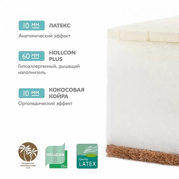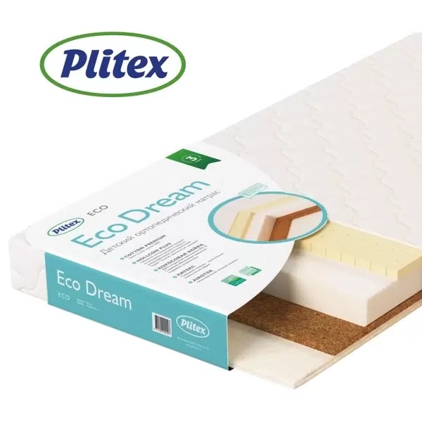Плитекс "Eco Dream" - беспружинный ортопедический двусторонний матрас средней степени жесткости. Сторона А — жесткая за счет плиты из многослойной кокосовой койры (1 см), сторона В — эластичная и упругая, благодаря латексной плите (1 см). Основа матраса — «Hollcon» высокой плотности (6 см). Съемный стеганый чехол на молнии выполнен из тика (100 % хлопок). Размер: 1190х600х90мм. Рекомендован для детей от 0 до 4 лет. Характеристики: Бренд Plitex Возрастная категория от 1 до 3 лет / до 1 года Наполнитель кокос / латекс Материал хлопок Жёсткость матраса 3 / 2 Тип матраса беспружинный / ортопедический / двусторонний Размеры и вес Длина (см) 119 Ширина (см) 60 Высота (см) 90 Создано программой AVS Document Converter www.avs4you.com