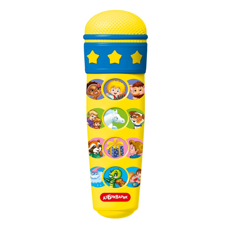 Новые оригинальные микрофоны-караоке для будущих звезд сцены! В каждом микрофоне – 12 весёлых детских песенок. Нажимайте на яркие кнопочки – слушайте песенки В. Шаинского: "Антошка", "Чунга-чанга", "Песенка Мамонтёнка", "Облака", "Пропала собака", "По секрету всему свету", "Пусть бегут неуклюже", "Улыбка", "Когда мои друзья со мной", "Весёлая карусель", "Дождь пойдет по улице", "Песенка про папу".