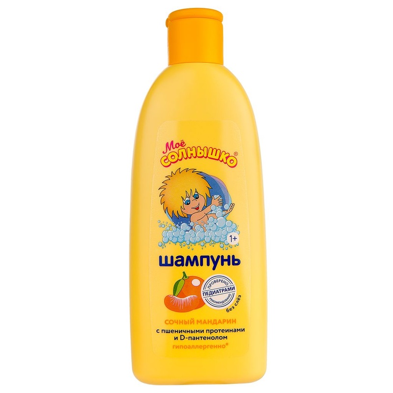 Нет в наличии ОтсутствуетМое солнышко Шампунь Сочный мандарин мягко очищает волосы и не щиплет глазки. Особенности: Пшеничные протеины и пантенол увлажняют и защищают каждый волосок, поэтому волосы становятся шелковистыми и легко расчесываются. расчесываются. Состав шампуня гипоаллергенен и сбалансирован по показателю pH. Клинически проверено и рекомендовано ФГУ «МНИИ Педиатрии и детской хирургии Минздрава России».