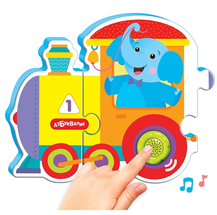 Играть с пазлами не только интересно, но и полезно для малыша! Это занятие развивает логику, мышление, внимание, мелкую моторику. В игровом наборе «Музыкальные пазлы. Умный паровозик» ребенок найдет 10 крупных ярких деталей, из которых он сможет собрать большой поезд! Главное – расположить вагончики правильно, ведь на каждом из них есть свой номер! Во время игры малыш сможет выучить буквы и цифры, посчитает зверят в вагончиках. Собирать пазлы под музыку еще интереснее! При нажатии на кнопочку малыш послушает обучающие песенки про алфавит и счет, а также танцевальные мелодии с веселыми звуками. Пазлы изготовлены из легкого мягкого материала EVA, с которым удобно и приятно играть.