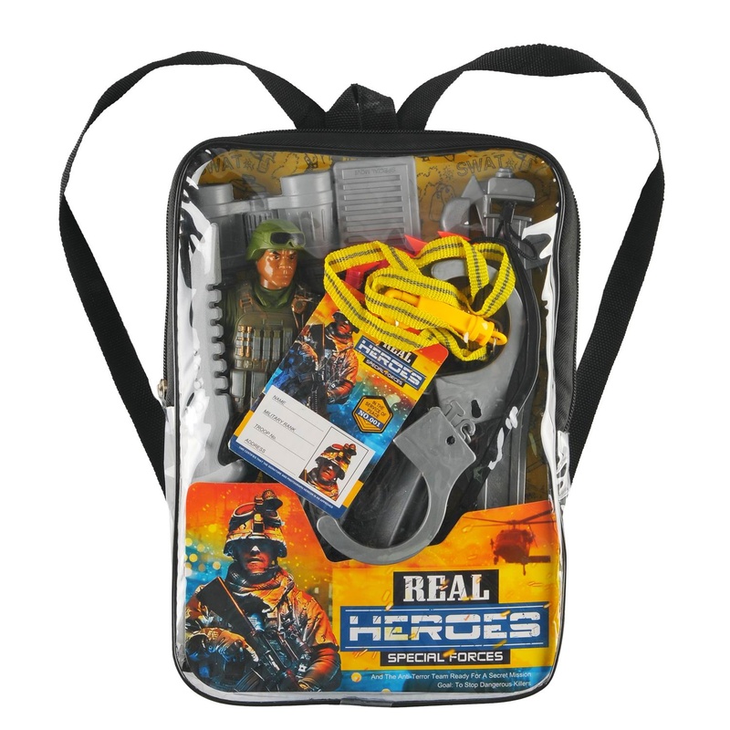 Нет в наличии ОтсутствуетИгровой набор военного способен порадовать мальчиков, в наборе есть фигурка солдата, а также много аксессуаров для вашего малыша, весь набор размещен в удобном рюкзаке, который можно взять с собой куда угодно!