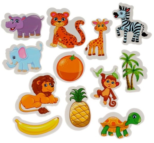 Набор стикеров EVA "Дикие животные" 12 шт. (сумочка-сетка)