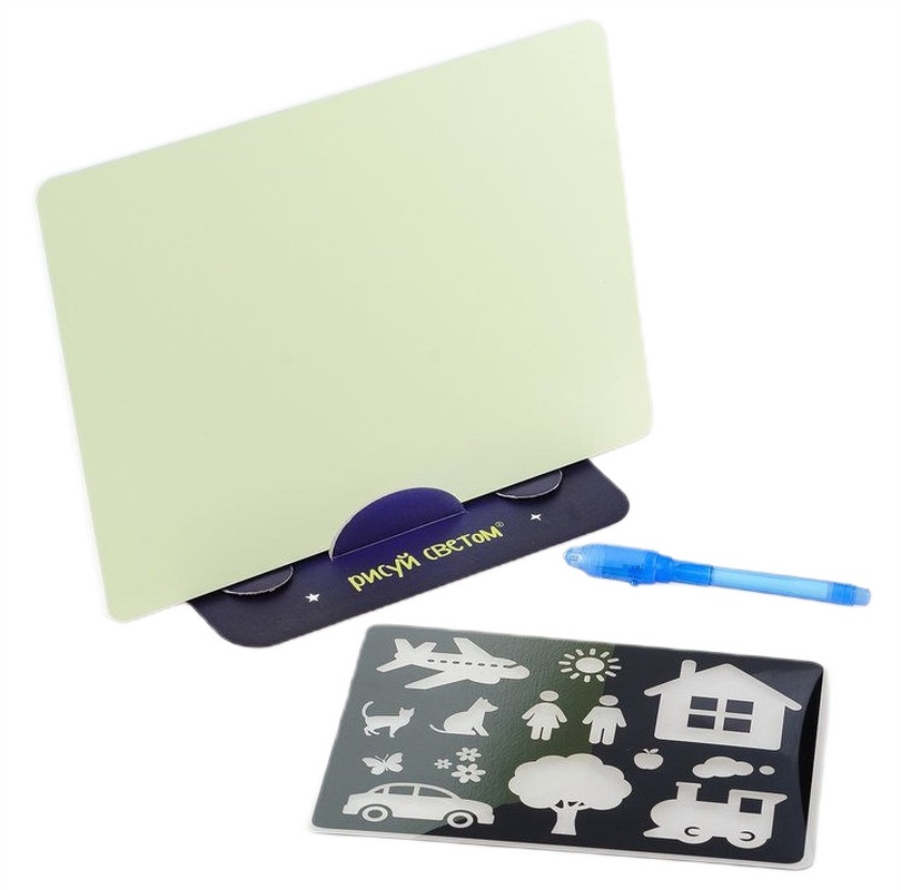Нет в наличии ОтсутствуетС набором «Световые картины» вы почувствуете себя настоящим волшебником, погрузившись в сказочный мир фантазий и чудес! Создавайте сюжеты и рисуйте картины, светящиеся в темноте, с помощью специального маркера и планшета. Максимальная яркость свечения рисунка держится 5-15 минут в зависимости от освещенности помещения. Чем темнее в помещении, тем ярче рисунок. Следующее изображение можно рисовать поверх предыдущего. Нарисованное изображение плавно затухает в течение 1,5 часов. В комплекте Коробка Планшет Чехол Подставка Ручка Трафарет Инструкция Польза «Световых картин» Развитие и образование детей в игровой форме. Развитие фантазии, памяти и творческих способностей. Арт-терапия. Снижение страха темноты. Совместный досуг родителей и детей. Срок службы набора не ограничен. Продукция сертифицирована и безопасна для детей. Рекомендуемое время рисования в темноте 15–20 минут.