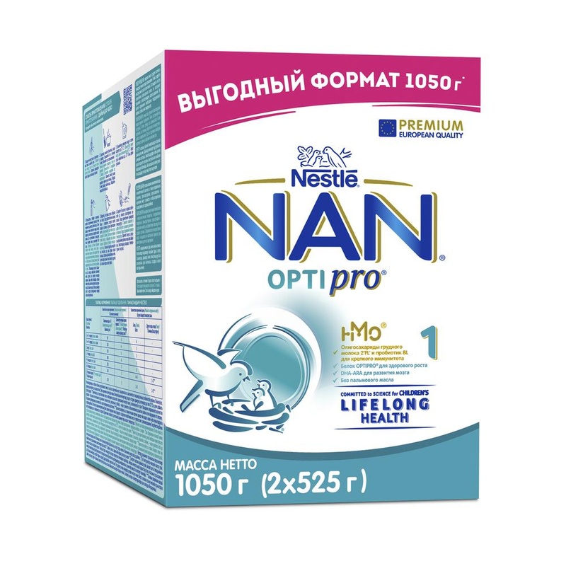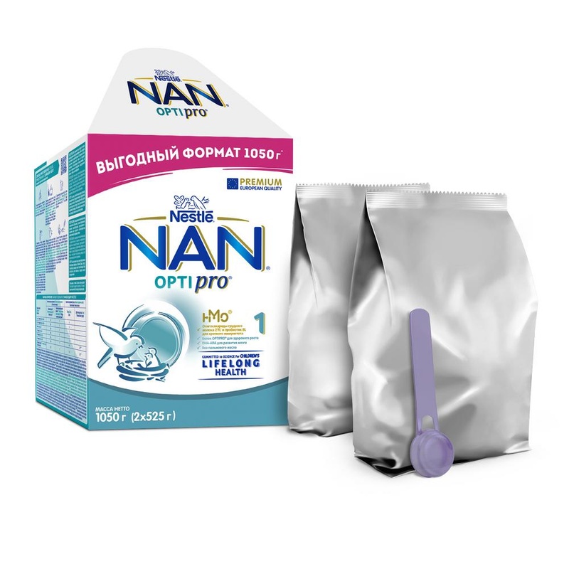 NAN® OPTIPRO® 1 - молочная смесь для детского питания, созданная на основе данных, полученных благодаря исследованиям Nestlé в области обеспечения здоровья детей на протяжении всей жизни. Смесь содержит уникальное сочетание компонентов - белок OPTIPRO®, олигосахарид 2’FL и пробиотик BL, которые поддерживают здоровое развитие вашего малыша в первые 6 месяцев жизни, помогая вам обеспечить прочную основу для его будущего здоровья. OPTIPRO® - эксклюзивный белковый комплекс - разработка, вдохновленная знанием о белке грудного молока, который уникален как по качеству, так и по количеству. Белковый комплекс научно разработан для поддержания здорового роста и развития малыша на данном этапе. Олигосахарид 2'FL, олигосахарид структурно идентичный наиболее распространенному виду олигосахаридов грудного молока. Количество 2’FL, добавленное в смесь NAN® OPTIPRO® 1, находится в пределах количества, содержащегося в грудном молоке. Исследования* показывают, что Олигосахариды 2'FL помогают поддерживать иммунитет. BL PROBIOTIC: натуральный пробиотик, который помогает поддерживать здоровую иммунную систему малыша. ВАЖНОЕ ПРИМЕЧАНИЕ Для питания детей раннего возраста предпочтительнее грудное вскармливание.Идеальной пищей для грудного ребенка является молоко матери. Грудное вскармливание должно продолжаться как можно дольше. Перед тем как принять решение об искусственном вскармливании с использованием детской смеси, обратитесь за советом к медицинскому работнику. Возрастные ограничения указаны на упаковке товаров в соответствии с законодательством РФ. Смесь NAN® 1 OPTIPRO® предназначена для кормления здоровых детей с рождения в случаях, когда грудное вскармливание невозможно. ПРЕДУПРЕЖДЕНИЕ Смесь следует готовить непосредственно перед кормлением. Точно следуйте инструкции по приготовлению. Оставшаяся после кормления разведенная смесь не подлежит хранению и последующему использованию. Во время кормления необходимо поддерживать ребенка, чтобы он не поперхнулся. Когда ребенок подрастет, переходите на кормление из чашки. Использование некипяченой воды и непрокипяченных бутылочек, а также неправильное хранение, транспортировка, приготовление и кормление могут привести к неблагоприятным последствиям для здоровья ребенка. Продукт изготовлен из сырья, произведенного специально отобранными поставщиками, без использования генетически модифицированных ингредиентов, консервантов, красителей и ароматизаторов. Рекомендованные в таблице объемы потребляемой смеси и частота кормлений могут варьироваться в зависимости от индивидуальных особенностей ребенка. Обратитесь за советом к медицинскому работнику. Примечание: для сохранения количества живых бактерий, вскипяченную воду следует остудить примерно до температуры тела (37°C) и затем добавить сухой порошок. Для приготовления смеси необходимо использовать прилагаемую мерную ложку, заполненную без горки. Разведение неправильного количества порошка - большего или меньшего по сравнению с количеством, указанным в таблице - может привести к обезвоживанию организма ребенка или нарушению его питания. Указанные пропорции нельзя изменять без совета медицинского работника. В этом возрасте часто рекомендуют постепенно вводить в рацион ребенка каши, овощи, фрукты, мясо и рыбу. Ввиду индивидуальных различий в потребн