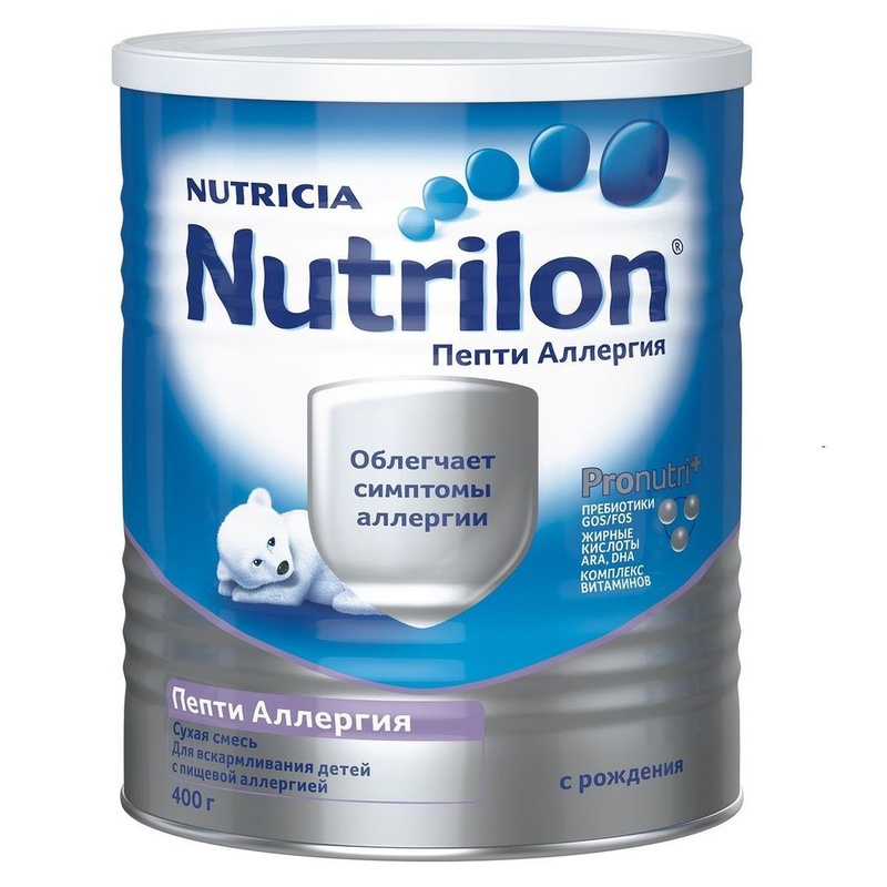 Нет в наличии ОтсутствуетСухая смесь с рождения Nutrilon (Нутрилон) Пепти Аллергия 400гр. – высокоэффективное средство диетотерапии аллергии. Это сухая смесь на основе гидролизованных белков молочной сыворотки Nutrilon Пепти Аллергия с пребиотиками. Создана для диетического (лечебного) питания детей с рождения. Детская смесь содержит уникальный комплекс пребиотиков Immunofortis®, по составу и свойствам приближенный к пребиотикам грудного молока. Клинически доказано, что Immunofortis естественным образом способствует укреплению иммунной системы малыша. В смесь добавлены жирные кислоты ARA/DHA для правильного развития мозга и органов зрения в соотношении, близком к грудному молоку. Особенности: Приятный вкус и нежная онсистенция Уникальный глубокий гидролизат сывороточного белка Мягкий вкус Хорошая переносимость у 97% детей с аллергией Молочная смесь предназначена для питания детей с рождения. Специальный состав смеси Нутрилон Пепти Аллергия создан из гидролизованных молочных белков и включает пребиотики. Такой основательный подход к детскому питанию вызван пищеварительными проблемами малышей, не принимающих традиционные смеси или вынужденных отказаться от грудного вскармливания. Неспособность усваивать продукты на коровьем молоке обусловлена непереносимостью у малышей данного вида белка. Попадая в кишечник, молоко вызывает у ребенка аллергические или острые диспепсические реакции, нарушает сон и приносит массу беспокойств. Особенности состава Продукт Пепти Аллергия относят с полным основанием к лечебному питанию, которое подойдет даже новорожденным. В процессе производства Нутрилон Пепти белок подвергается глубокому расщеплению на уровне молекул и переходит в иную форму, что облегчает всасывание. Таким образом, исключаются любого рода отрицательные реакции на присутствие молочного белка. Помимо специально подготовленных белков, в смесь Пепти вводится полноценный комплекс нутриентов и уникальные по своему составу и действию пребиотики. Во взаимодействии с нуклеотидами Immunofortis стимулирует иммунитет подобно грудному молоку. Присутствие докозагексаеновой и арахидоновой жирных кислот положительно отражается на развитии мозга и зрении. Предостережения Только педиатр может дать рекомендацию о переводе вашего малыша на эту Нутрилон Пепти Аллергия. Следуйте рекомендациям врача. Стул ребенка, получающего данную смесь, может приобрести зеленоватый цвет, что обусловлено присутствием в смеси гидролизата сывороточного белка. Такие изменения присущи всем смесям на основе гидролизата сывороточного белка. Создано программой AVS Document Converter www.avs4you.com