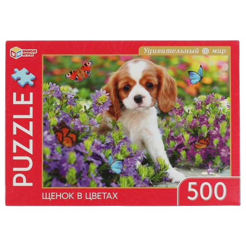 Пазлы 500Д "Щенок в цветах"