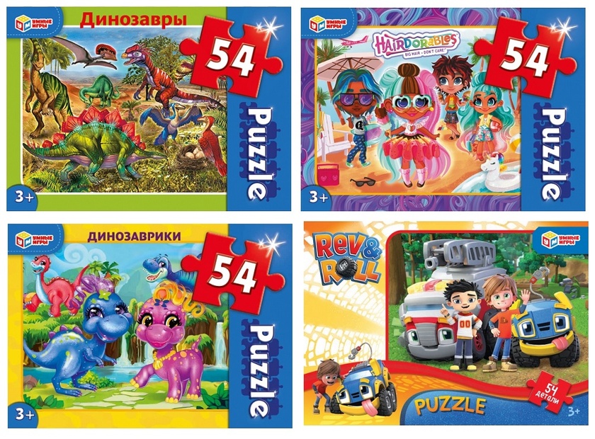 Пазлы 54Д "Микс" робот трейнс/синий трактор/акулёнок/супер крылья/динозаврики/рев и рол/хеардорабль.