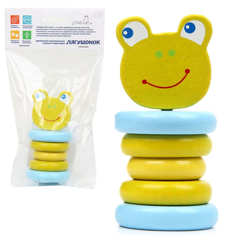 Гибкая деревянная пирамидка в виде симпатичного лягушонка привлечет внимание Вашего ребенка, каждая деталь пирамидки соеденена резинкой, поэтому пирамидку можно крутить, вертеть, сгибать в разные стороны, детальки приятны на ощупь. Пирамида выполнена из качественного дерева, не имеет запаха, для изготовления используются качественные материалы. Развивает мелкую моторику рук. Размер игрушки: 5,5*5,5*11 см
