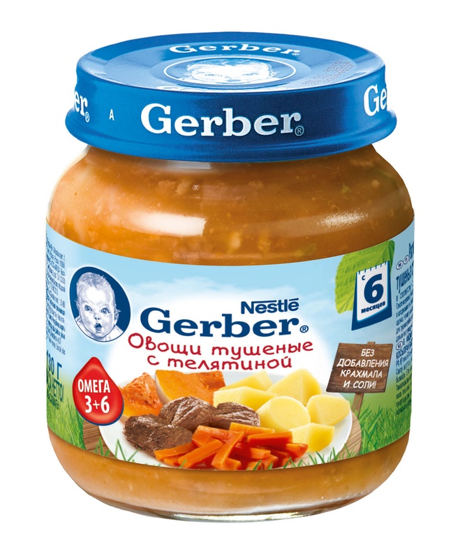Пюре Гербер Овощи тушеные с телятиной 130 г.