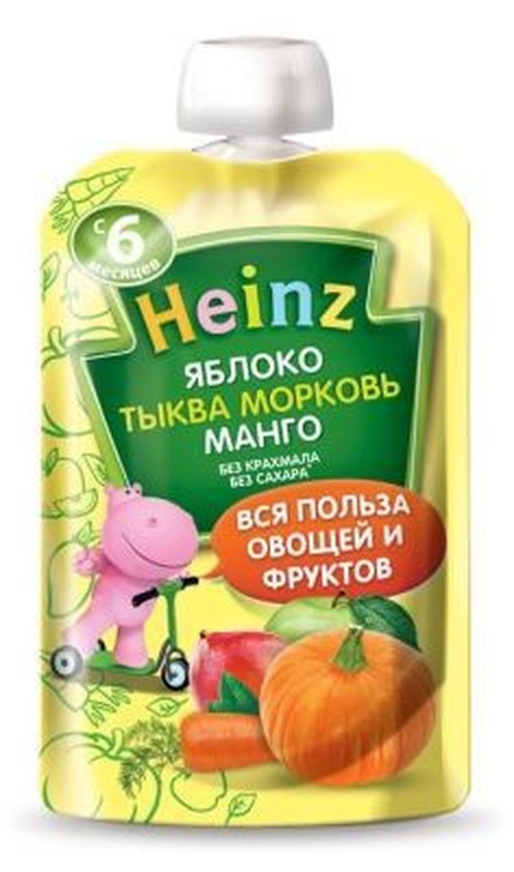 Пюре Хайнц яблоко, морковь, тыква, манго 90 г. пауч/12