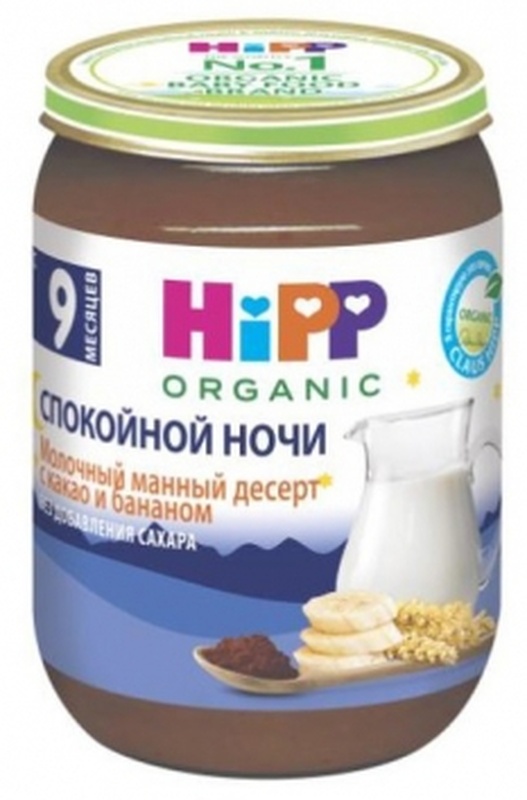 Пюре Хипп десерт мол.манный с какао и бананом 190 гр.(БЗМЖ)