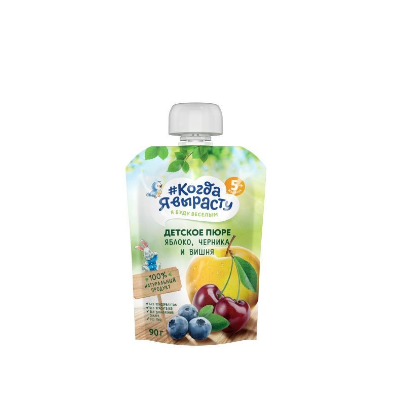 Пюре Когда я вырасту Яблоко черника вишня без сахара, с 5 мес. дой пак, 90 гр.