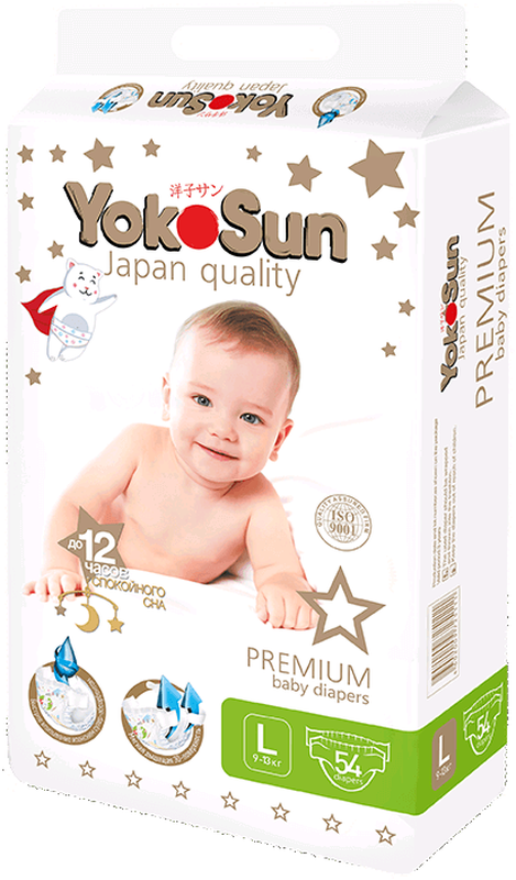 Подгузники "Yokosun" PREMIUM L 9-13 кг. (54 шт.)/4