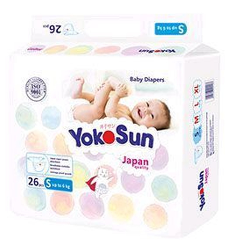 Yokosun Подгузники S (до 6 кг) 26 шт. - это новые подгузники, отвечающие всем требованиям современных мам. В изготовлении подгузников используется японский абсорбент, который быстро впитывает и удерживает влагу, поддерживая сухость в течение длительного времени. Особенности: •Подгузники YokoSun изготовлены из мягчайших материалов, они действительно очень тонкие. И со своей главной функцией, впитывать влагу и удерживать ее внутри, они тоже справляются на отлично •Уникальное строение впитывающего слоя делает подгузники тонкими и легкими. При этом, за счет нового внутреннего слоя, впитывание происходит еще быстрее. •Он выполнен из двухслойной 3D ткани, которая быстро пропускает влагу внутрь и препятствует ее выходу наружу •При намокании даже у активных малышей гель- абсорбент (японской фирмы Sumitomo) остается на своих местах, что исключает появление пустот внутри подгузника •Необычайно нежный дышащий внешний слой подарит вашему малышу сухость и комфорт. •Мягкий эластичный поясок плотно облегает тело малыша, но не давит на животик. • Индикатор влажности подскажет вам, когда необходимо сменить подгузник. Его цвет сменится с желтого на синий. •Мягкие двойные барьеры плотно прилегают к ножкам малыша и надежно защищают от протечек. •При производстве использована международная системы менеджмента качества ISO9001. Продукт сертифицирован в России.Подгузники и трусики YokoSun настолько лёгкие, тонкие и мягкие, что ребенок их не чувствует!