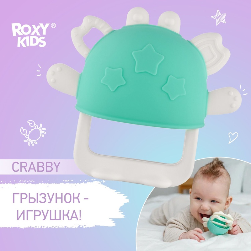 Прорезыватель Крабик на руку силиконовый, бирюзовый