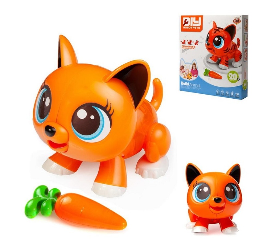 Набор «Мой питомец» предлагает ребёнку собрать милого маленького тигренка-робота, который будет ходить вслед за своим лакомством и весело скакать. Внутри коробочки - 16 деталей будущего питомца, морковка, лист со стикерами-глазками и обучающее руководство. Большинство деталей пронумеровано, чтобы помочь ребёнку легко и быстро собрать лисёнка. Внутри питомца расположен двигатель, преобразующий энергию в механическую силу и заставляющий зверюшку двигаться. Кроме того, этот двигатель оборудован датчиком - он обнаруживает магниты, поэтому при каждом «кормлении» магнитной косточкой лисёнок забавно скачет. При включении на игрушке загорается маленькая красная лампочка. Для работы функций потребуются 2 батарейки типа АА на 1,5 V (не входят в комплект). Материалы: полимерные материалы. Упаковка: коробка.