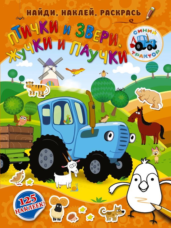 Синий трактор. Птички и звери, жучки и паучки (найди, наклей, раскрась)