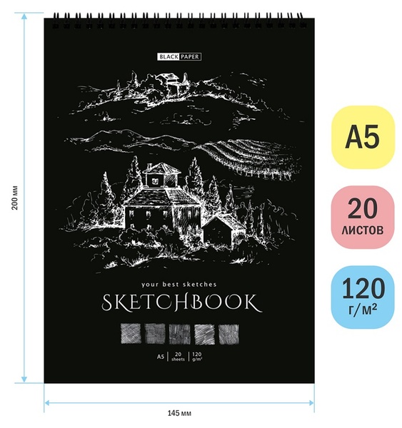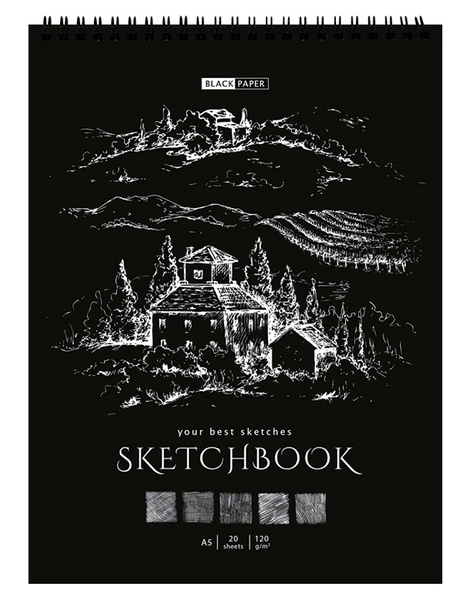 Скетчбук 20л., А5 "Black line. House", на гребне, черный блок