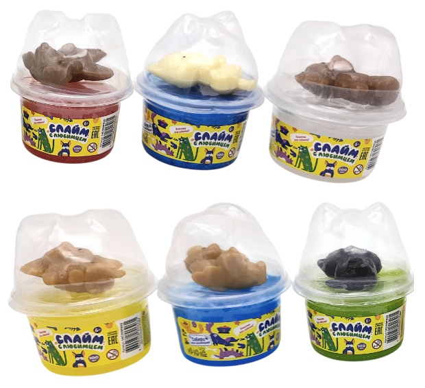 Слайм с игрушкой в комплекте 100 мл, ассорти, стакан,1/3