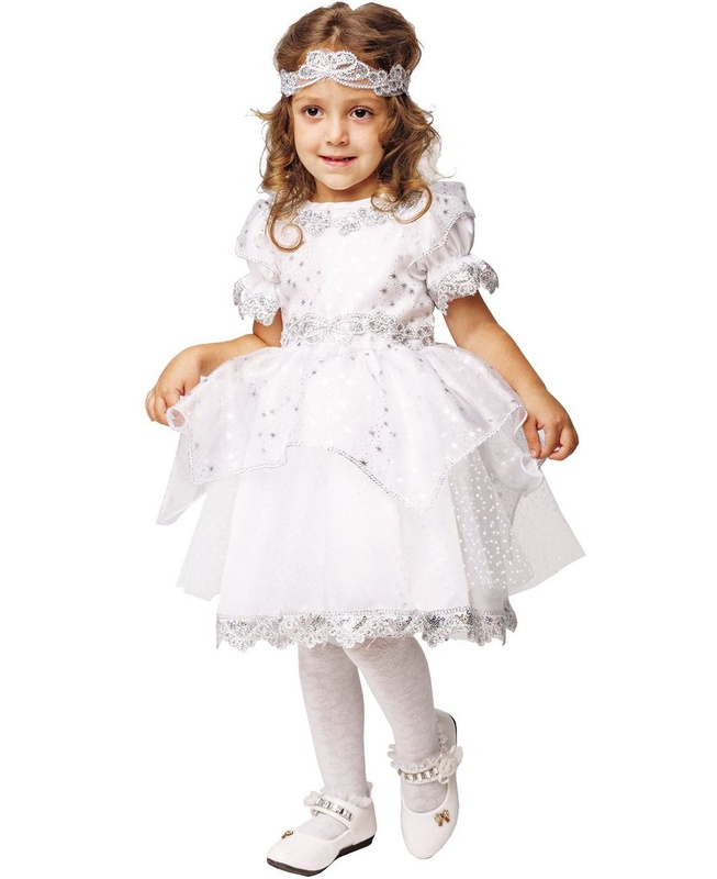 Нет в наличии ОтсутствуетОсобенности: Пышное платье с несколькими прозрачными юбочками Блестящий принт "звезды" Вставки с серебряной тесьмой на рукавах, воротнике, поясе и нижней части платья С объемными рукавами-фонариками Повязка с белым узором из шитья и пайеток Характеристики: Ткань: полиэстер Рост: 104-128 см Размеры: 26-32 Производитель: Пуговка, Россия