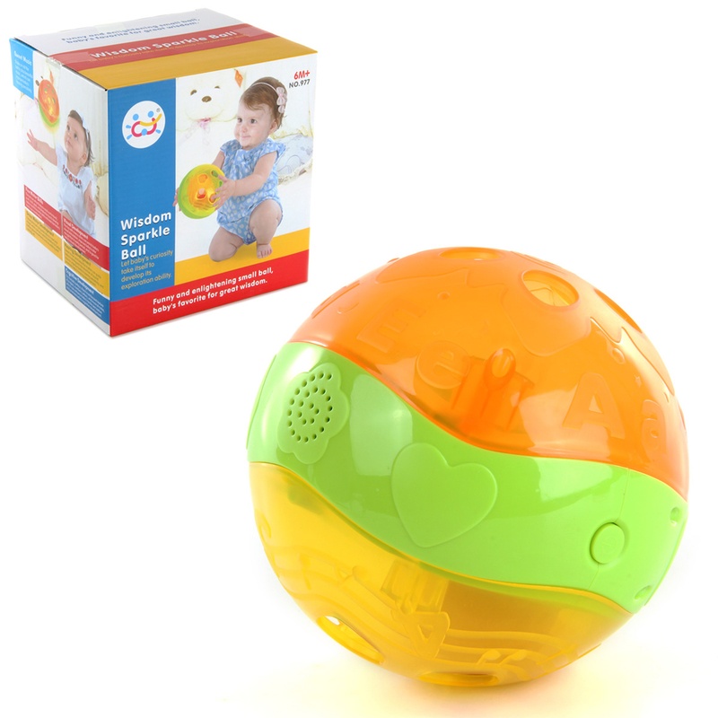 Яркая и интересная игрушка для самых маленьких обязательно позабавит малыша и подарит ему массу положительных эмоций. Игрушка представляет собой шар, внутри которого перекатывается шарик поменьше. На корпусе большого шарика имеются отверстия - удобно держать игрушку сразу пятью пальчиками. Кнопка включения находится на корпусе шара. При включении игрушка проигрывает мелодию, внутри шара подсвечиваются лампочки. Если шарик встряхнуть или покатить, он станет проигрывать музыку и издавать различные звуки, лампочки внутри игрушки будут подсвечиваться (проигрывает 10 мелодий). На поверхности шарика нанесены выпуклые рисунки букв, геометрических фигур, цифр и нот. Если с игрушкой долго не взаимодействовать, она выключится сама. Благодаря такой игрушке ребенок будет с удовольствием развивать мелкую моторику рук, координацию движений, тактильные навыки, слуховое и зрительное восприятие, воображение. Обязательно порадуйте малыша такой красивой и яркой игрушкой. Игрушка предназначена для детей до 3 лет. Игрушка работает от 3 батареек LR44, входят в комплект. Игрушка изготовлена из качественной и безопасной пластмассы. Диаметр игрушки: 12,5 см. Размеры коробки: 18*15,5*19 см.