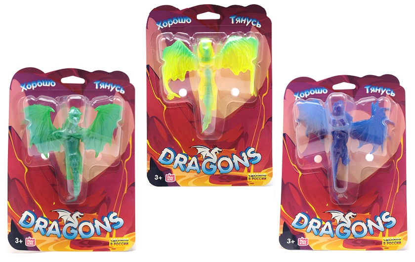Тянущаяся фигурка "Драконы", ассорти, блистер
