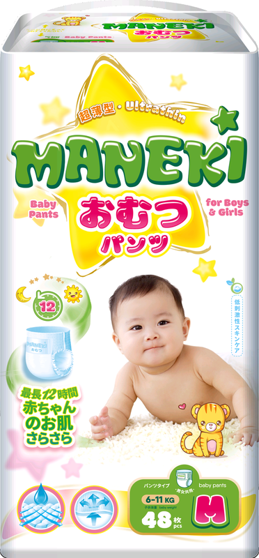 Ультратонкие гипоаллергенные подгузники и подгузники-трусики ТМ MANEKI изготовлены из высококачественных паропроницаемых материалов, сохраняют сухость ребенка до 12 часов и благодаря мгновенному и равномерному впитыванию абсорбент не сбивается в комки. Подгузники и подгузники-трусики ТМ MANEKI ультратонкие и при этом отлично - мгновенно впитывают, равномерно распределяют и надежно удерживают влагу внутри. В легких и воздушных трусиках и подгузниках малышу комфортно всегда. Бархатистый внешний слой дарит ощущение нежности при прикосновении. Используются самые передовые технологии при производстве нетканого материала для придания ему свойства нежнейшего хлопка. Подобранные пропорции состава впитывающего слоя (целлюлоза и впитывающий вкладыш) обеспечивают максимально тонкий слой Подгузников и Трусиков, без потерь в эффективности впитывания. Созданы для использования Днём и Ночью. Применяется суперабсорбент наивысшего качества, который обеспечивает максимальную впитываемость и удержание влаги внутри на долгое время. Надёжная защита от протекания. Уникальная система перфорации впитывающего слоя в виде ромбиков, обеспечивают максимальную скорость впитывания и равномерное распределение влаги. Высокий пояс защищает от протекания по спинке, а эластичные бортики-манжеты - от бокового протекания. Надежные застежки у подгузников и боковые швы у трусиков не повредят нежную кожу малыша. Индикаторы влаги быстрее подскажет уровень наполненности подгузника. С липкой полоской на задней стороне легче свернуть и утилизировать использованные трусики. Милые рисунки на трусиках и подгузниках понравятся и маме, и малышу, а пастельные тона будут незаметны под одеждой. В подгузниках и подгузниках-трусиках ТМ MANEKI удобно маме и комфортно малышу.