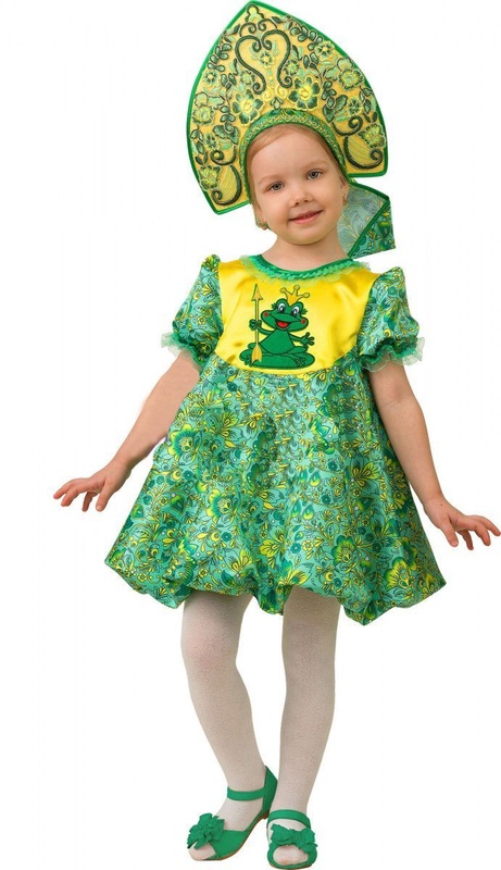 Нет в наличии ОтсутствуетВ костюме: платье, кокошник. Лягушки тоже могут быть царевнами, это все дети узнали из русско-народной сказки "Царевна-лягушка". На детский утренник будет интересно нарядить своего ребенка в этот необычный и такой сказочный карнавальный костюм. Сатиновое платье с принтами в зелено-желтой цветовой гамме выглядит шикарно, взгляды окружающих будут прикованы к аппликации с лицевой части. Маскарадный костюм больше указывает на царевну, чем на лягушку. От земноводного создания остался только насыщенный цвет. Новогодний костюм украшен кокошников, который пошит из той же ткани, что и прекрасное платье. Наряд можно использовать как карнавальный костюм, на сцене платье будет выглядеть шикарно. Купить такой наряд можно для танцевального коллектива или на детский утренник в школу или садик. Любая девочка будет выглядеть сказочно и мило. Создано программой AVS Document Converter www.avs4you.com