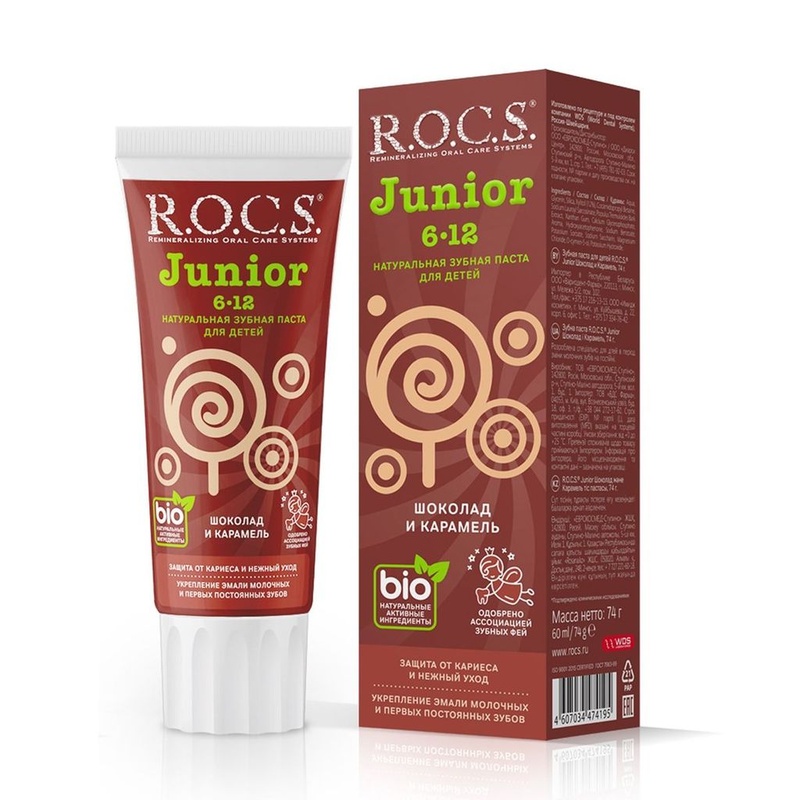 Зубная паста Рокс Джуниор Шоколад и карамель 6-12 лет,74г